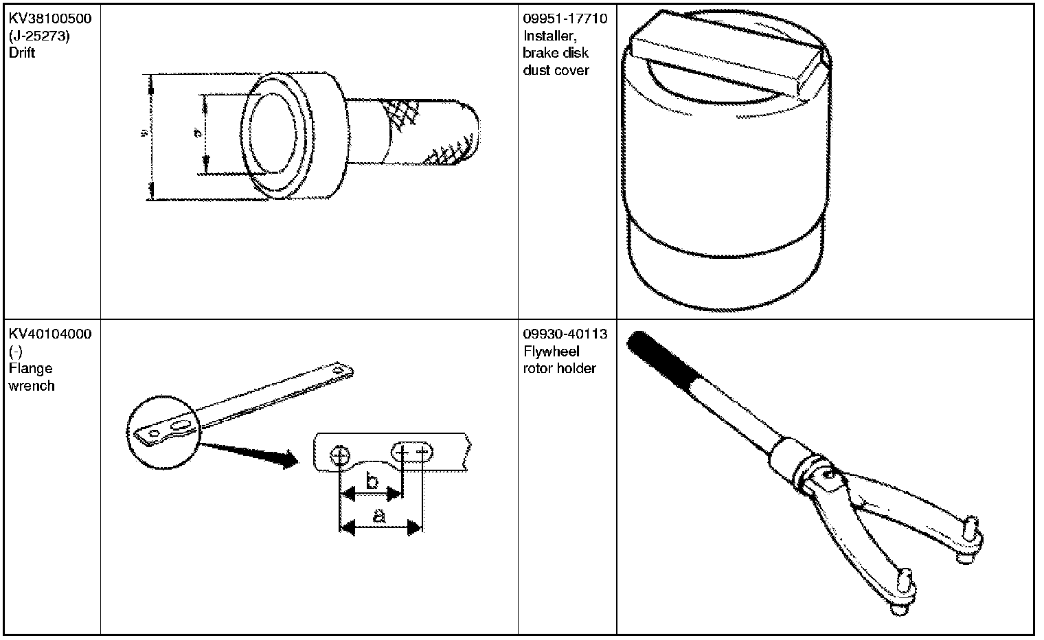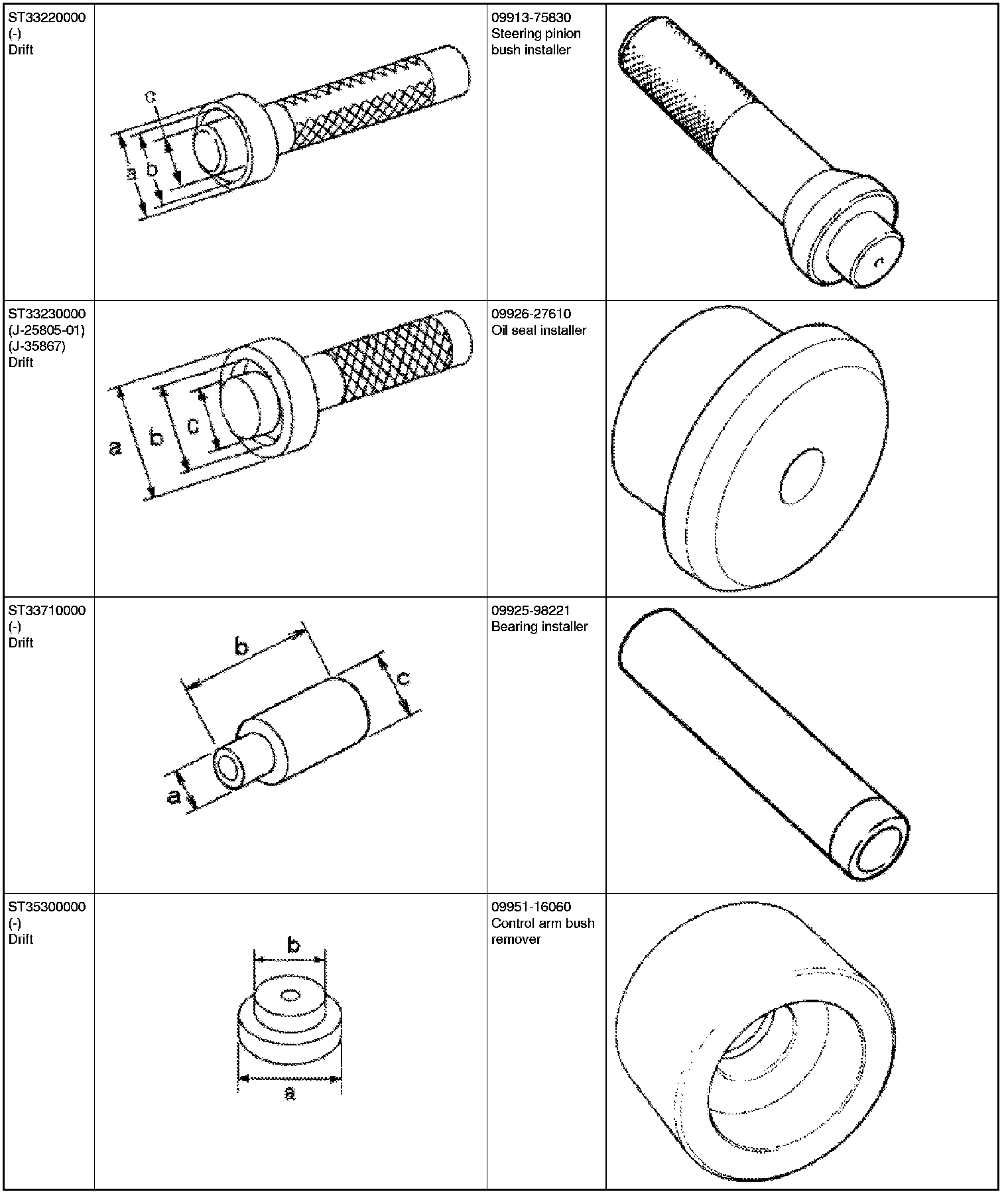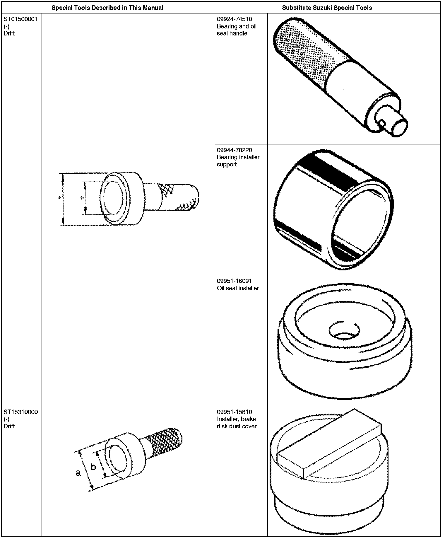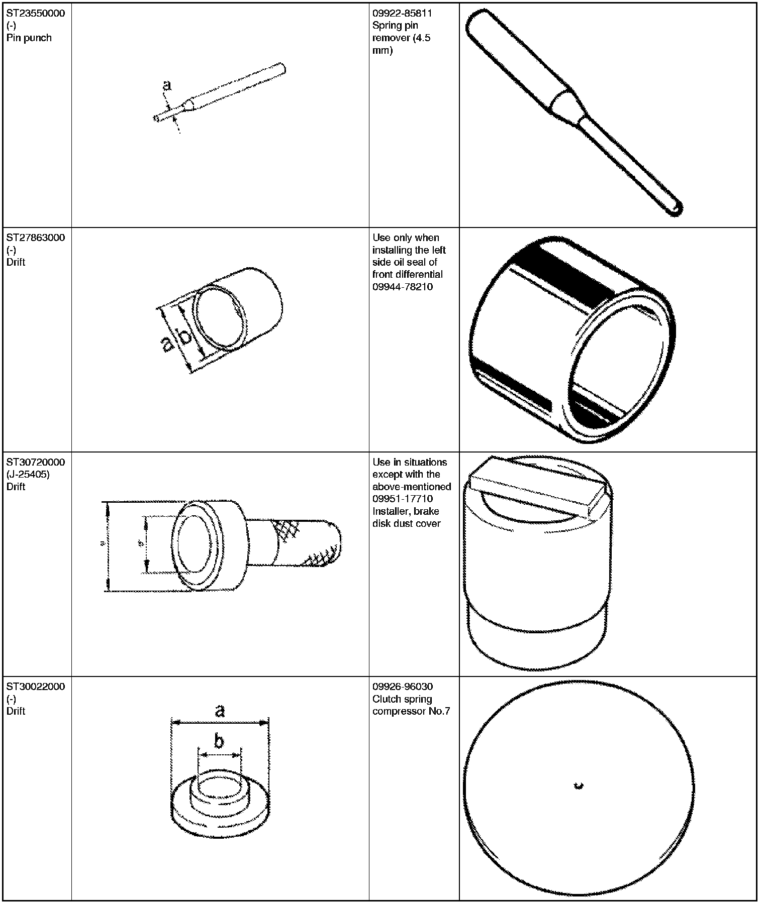 The substitute special tools below are usable instead of the special tools described in this manual.