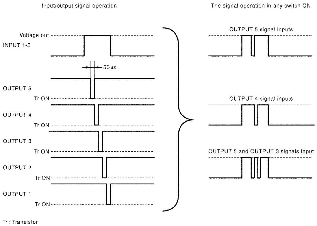 - It operates the transistor on OUTPUT side in the following order: OUTPUT 5 -> 4 -> 3 -> 2 -> 1.