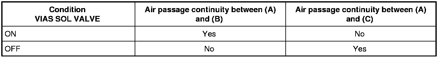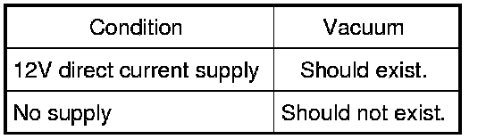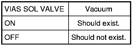 4 Turn VIAS control solenoid valve "ON" and "OFF", and check vacuum existence under the following conditions.