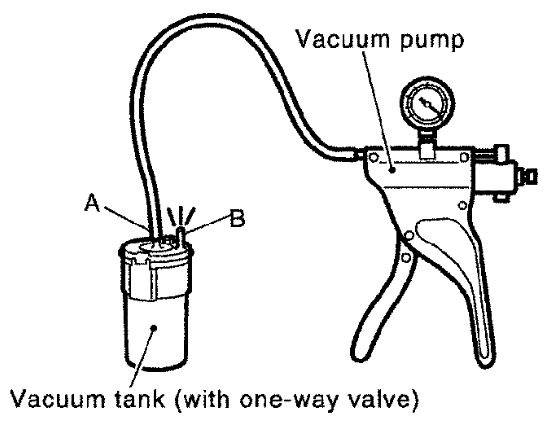 3 Apply vacuum and make sure that vacuum exists at the port (B).