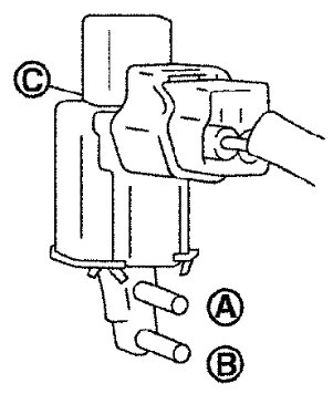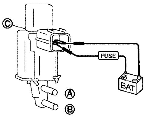 4 Apply 12V of direct current between VIAS control solenoid valve terminals 1 and 2.