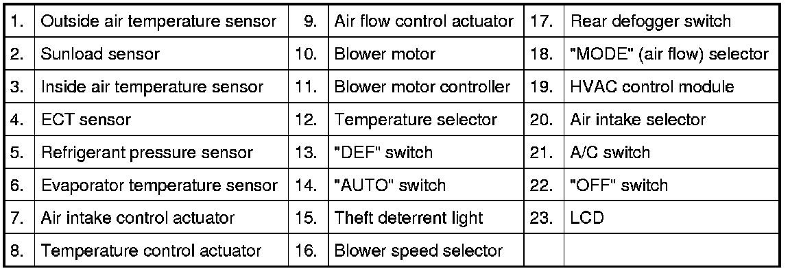 A/C Control System Component Location