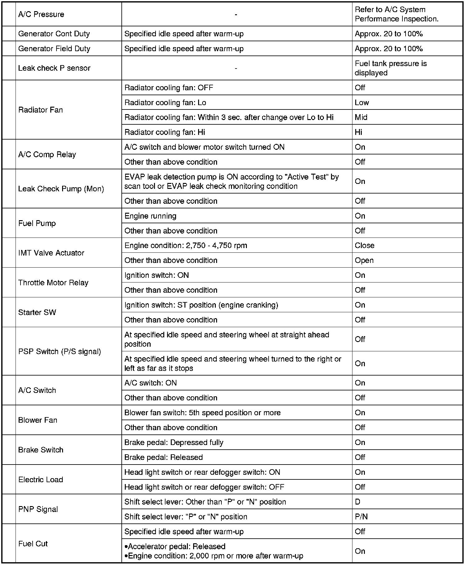 Hi: ON command being output to radiator cooling fan relay No.1, No.2 and No.3.