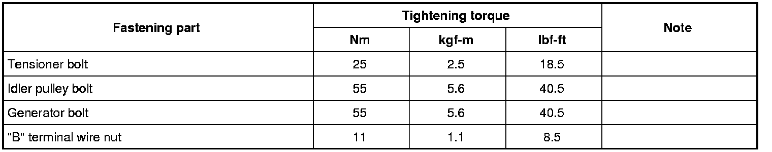 For the tightening torques of fasteners not specified in this section, refer to Fastener Information Fastener Information.