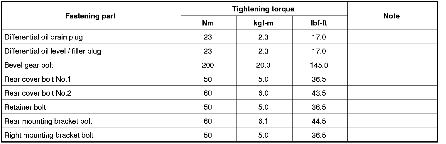 For the tightening torques of fasteners not specified in this section, refer to Fastener Information Fastener Information.