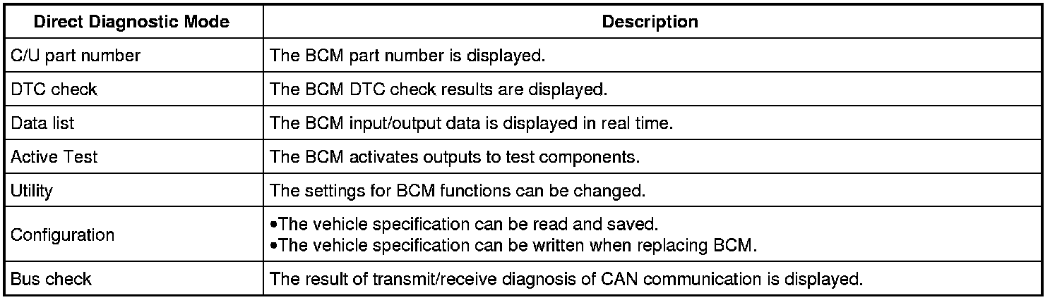 BCM can perform the following functions.