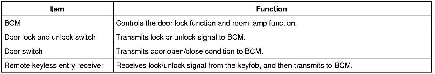 Door Lock Function: Component Description [Remote Keyless Entry]