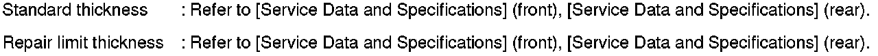 Check for any wear or damage. Measure the pad thickness. Replace as necessary.