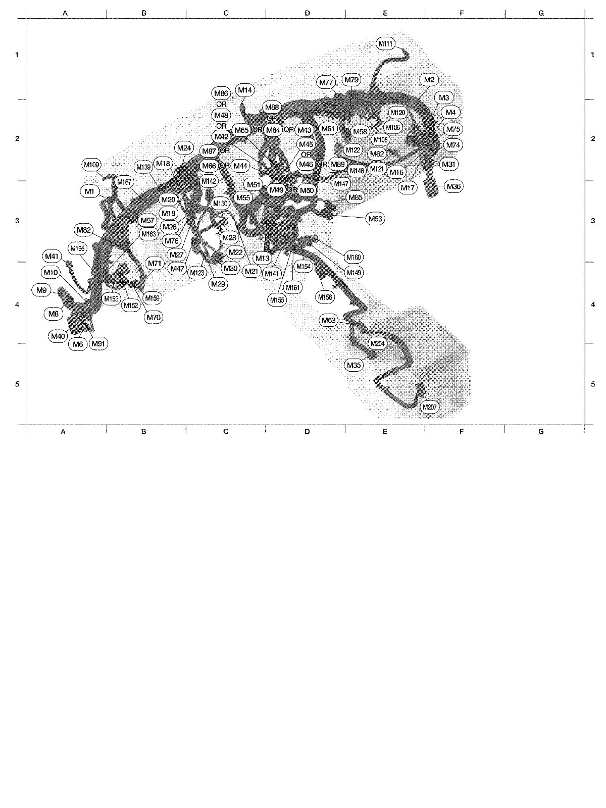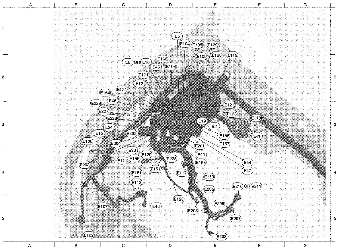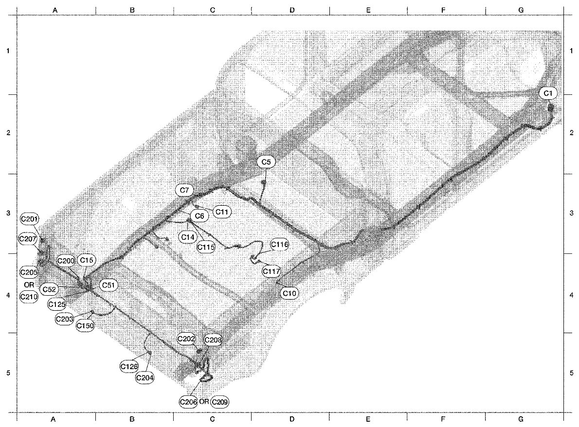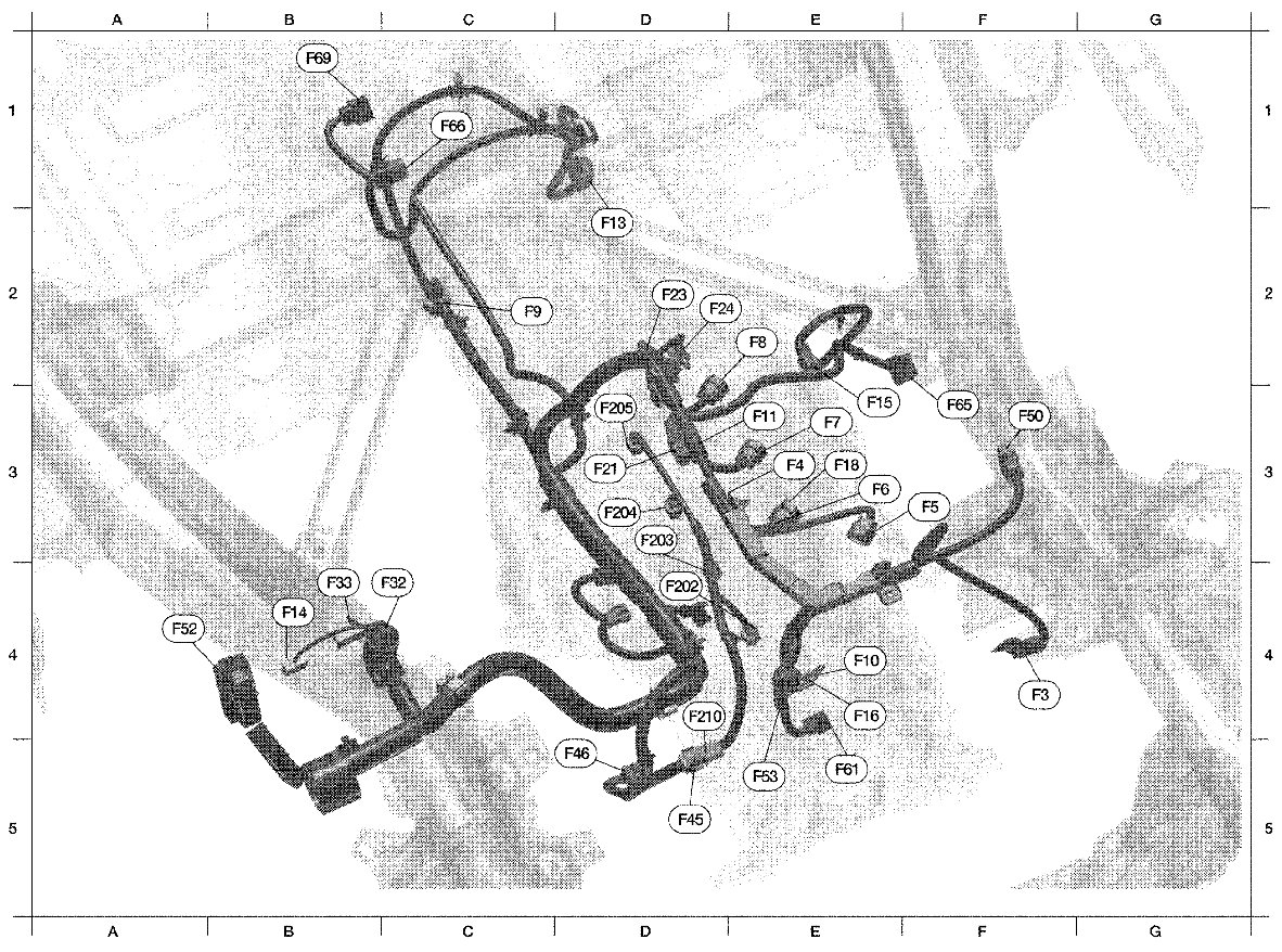 The following Harness Layouts use a map style grid to help locate connectors on the drawings: