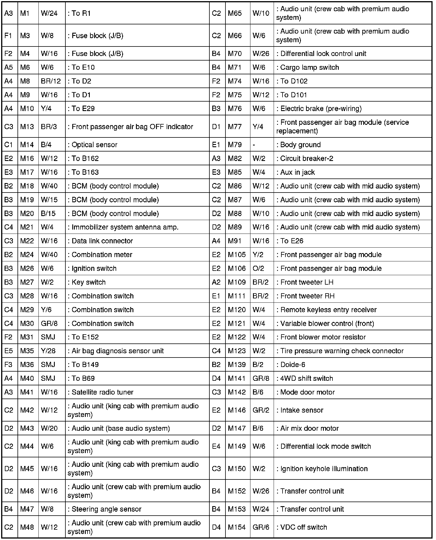 - Body Harness (Crew Cab Models) and Front Seat LH Harness
