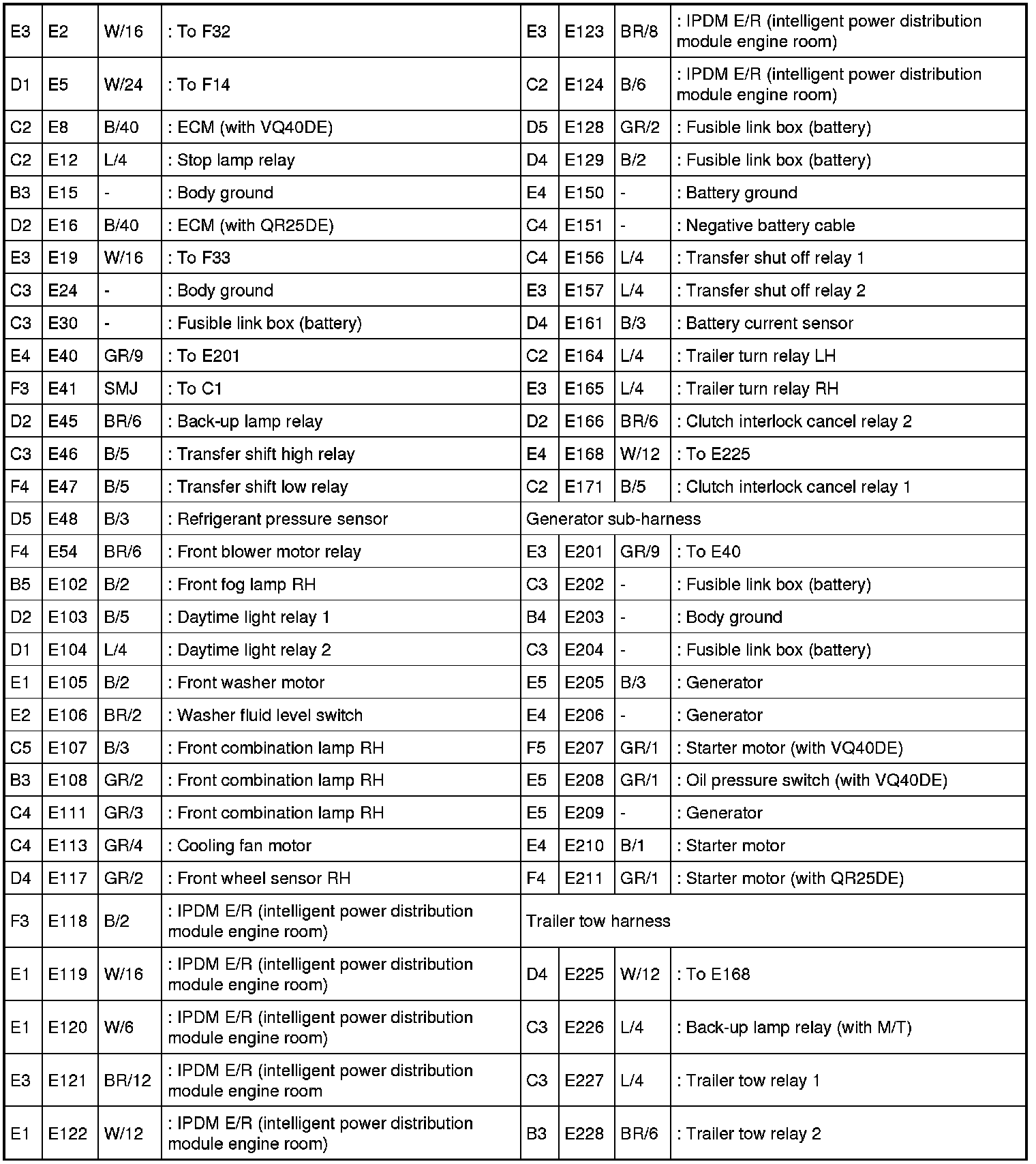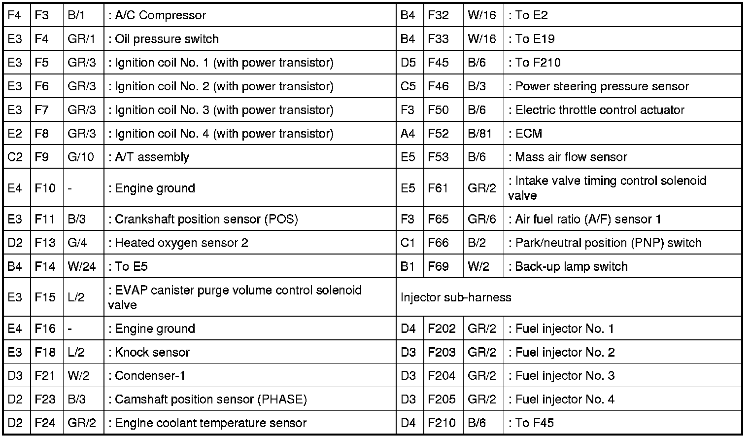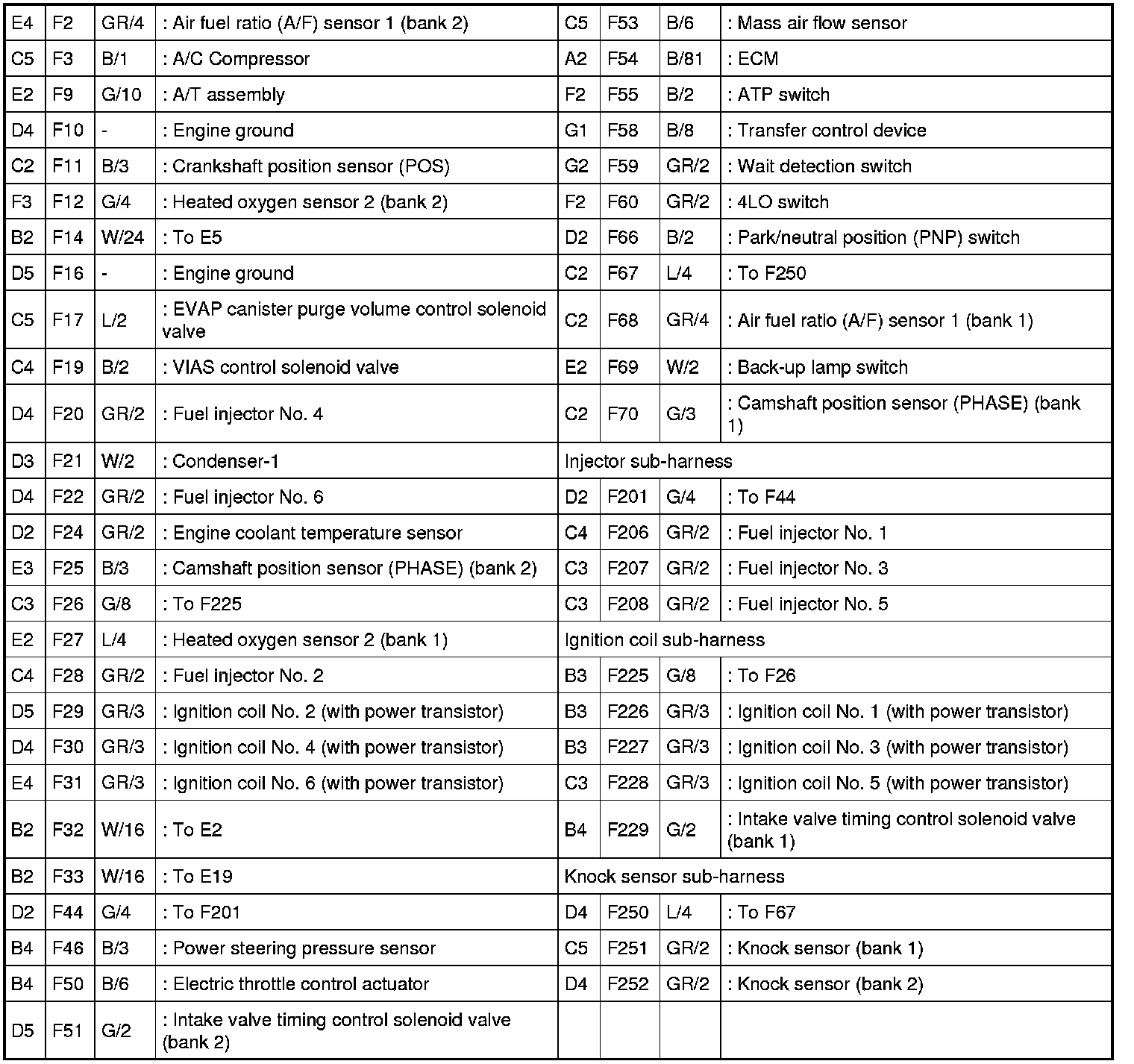 - Engine Control Harness (VQ40DE Models), Injector Sub-harness, Ignition Coil Sub-harness and Knock Sensor Sub-harness