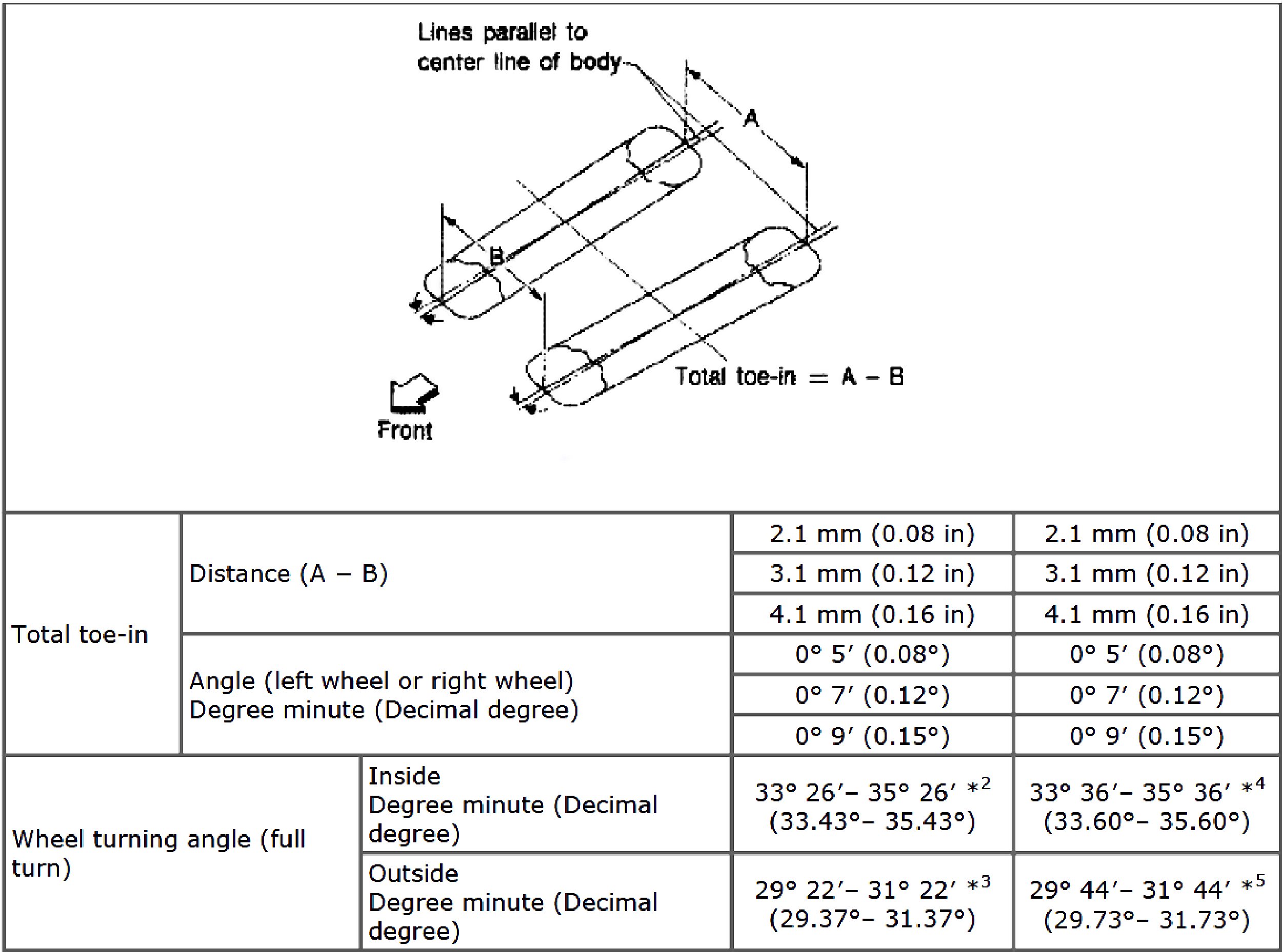 Total Toe-in And Wheel Turning Angle: