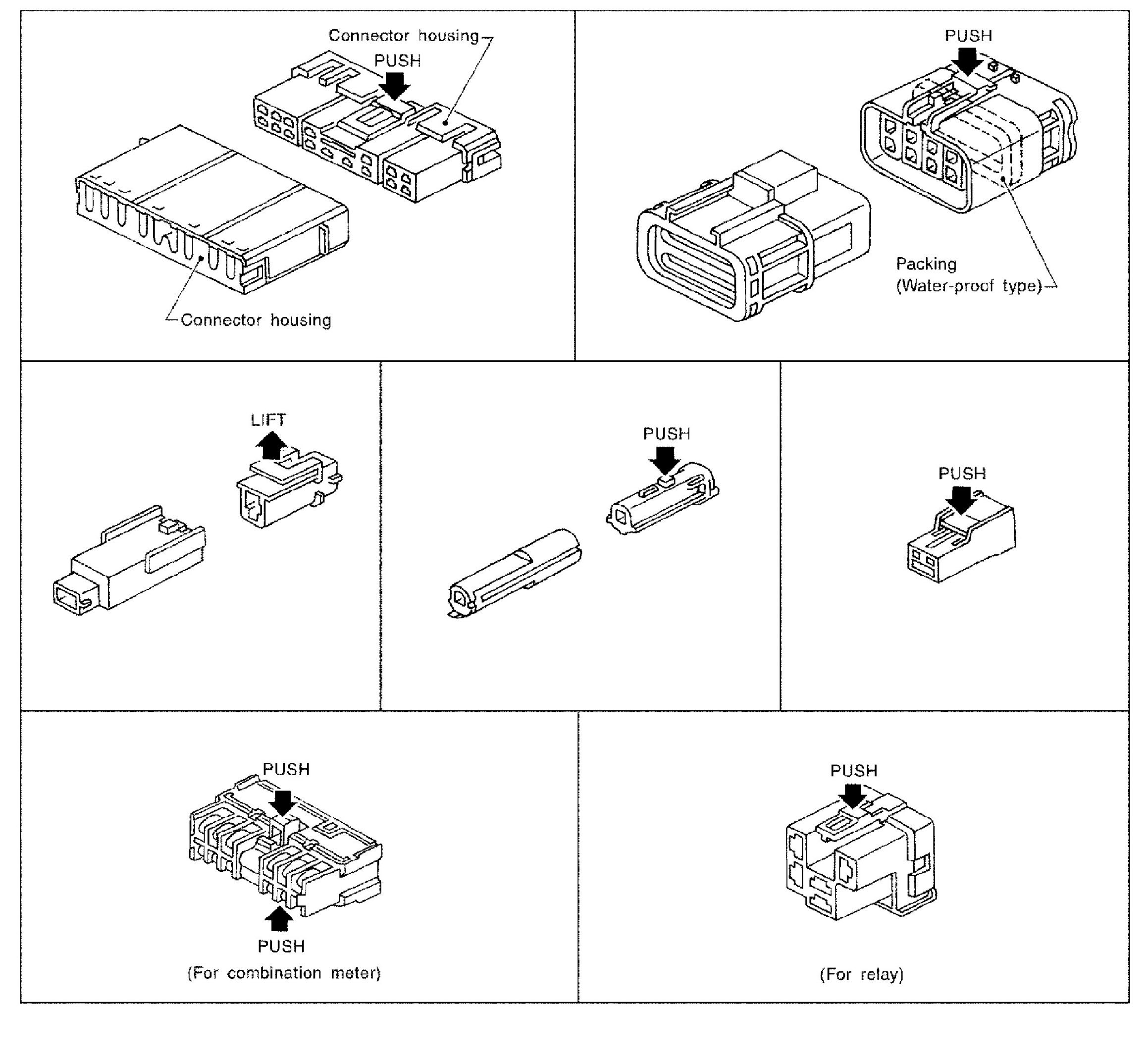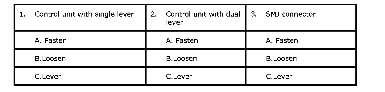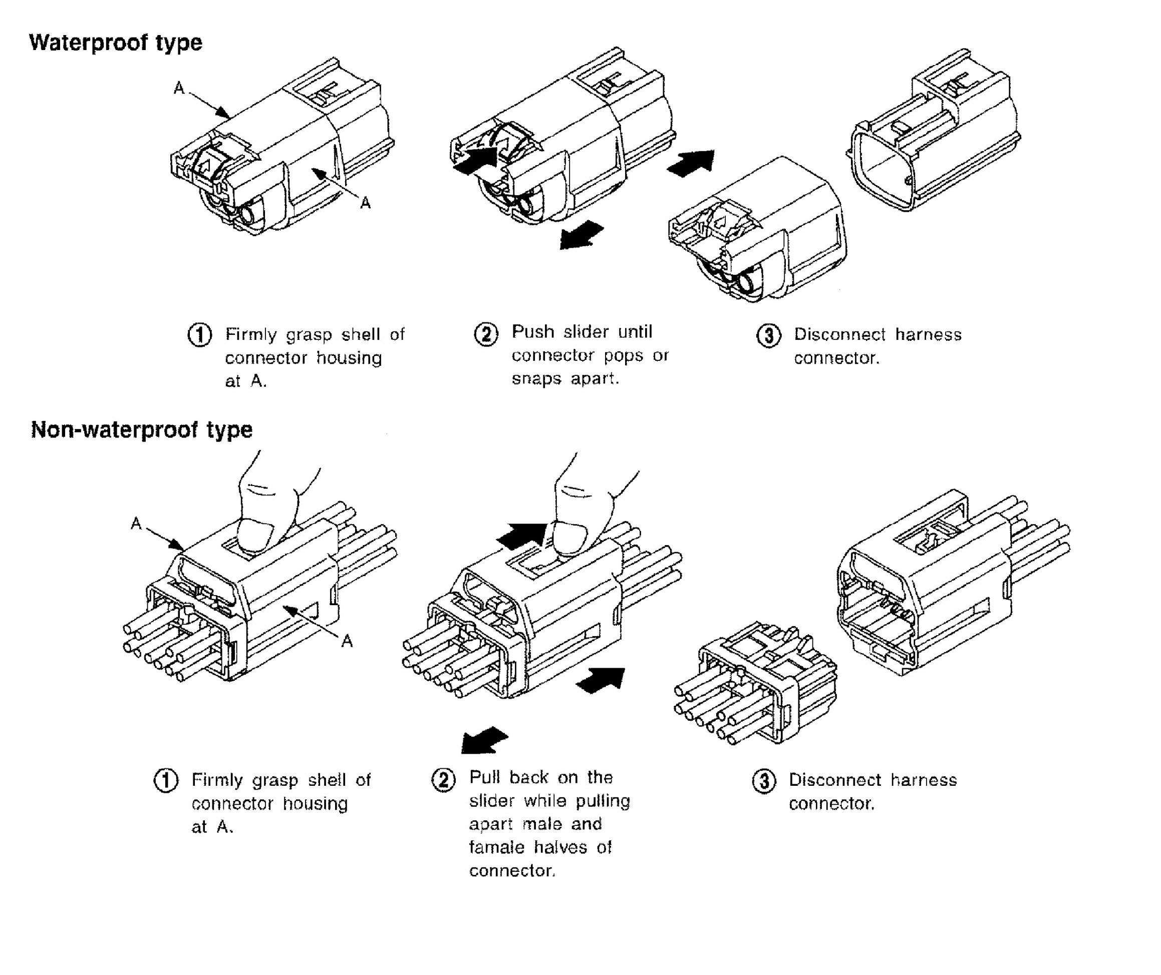 ^ Lever locking type harness connectors are used on certain control units and control modules such as ECM, ABS actuator and electric unit (control unit), etc.