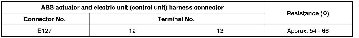 2 Check the resistance between the ABS actuator and electric unit (control unit) harness connector terminals.