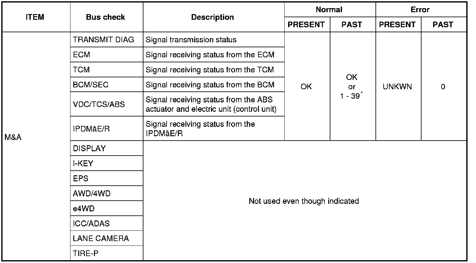 0: Error at present, 1 - 39: Error in the past (Number means the number of times the ignition switch is turned OFF -> ON)