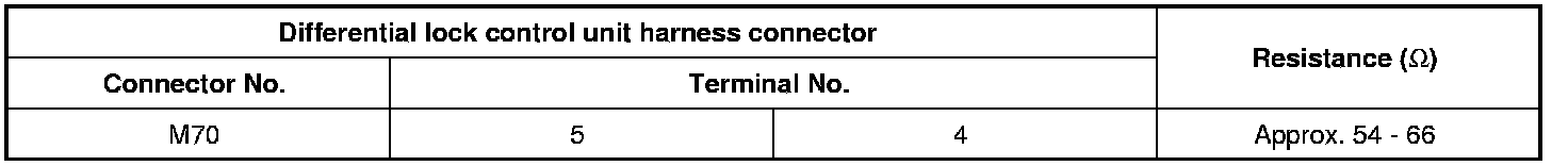 2 Check the resistance between the differential lock control unit harness connector terminals.