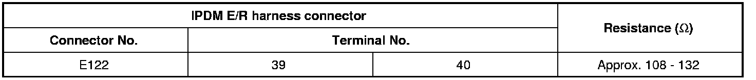 2 Check the resistance between the IPDM E/R harness connector terminals.