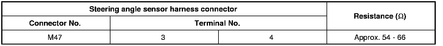2 Check the resistance between the steering angle sensor harness connector terminals.