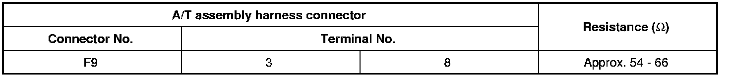2 Check the resistance between the A/T assembly harness connector terminals.