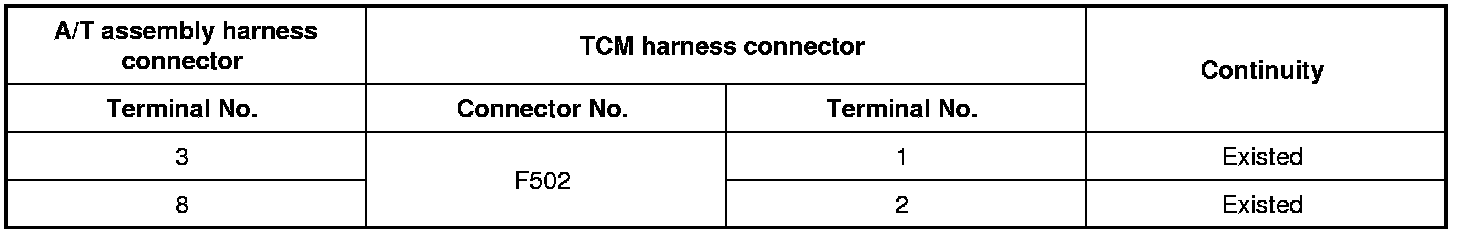 3 Check the continuity between the A/T assembly harness connector and TCM harness connector.