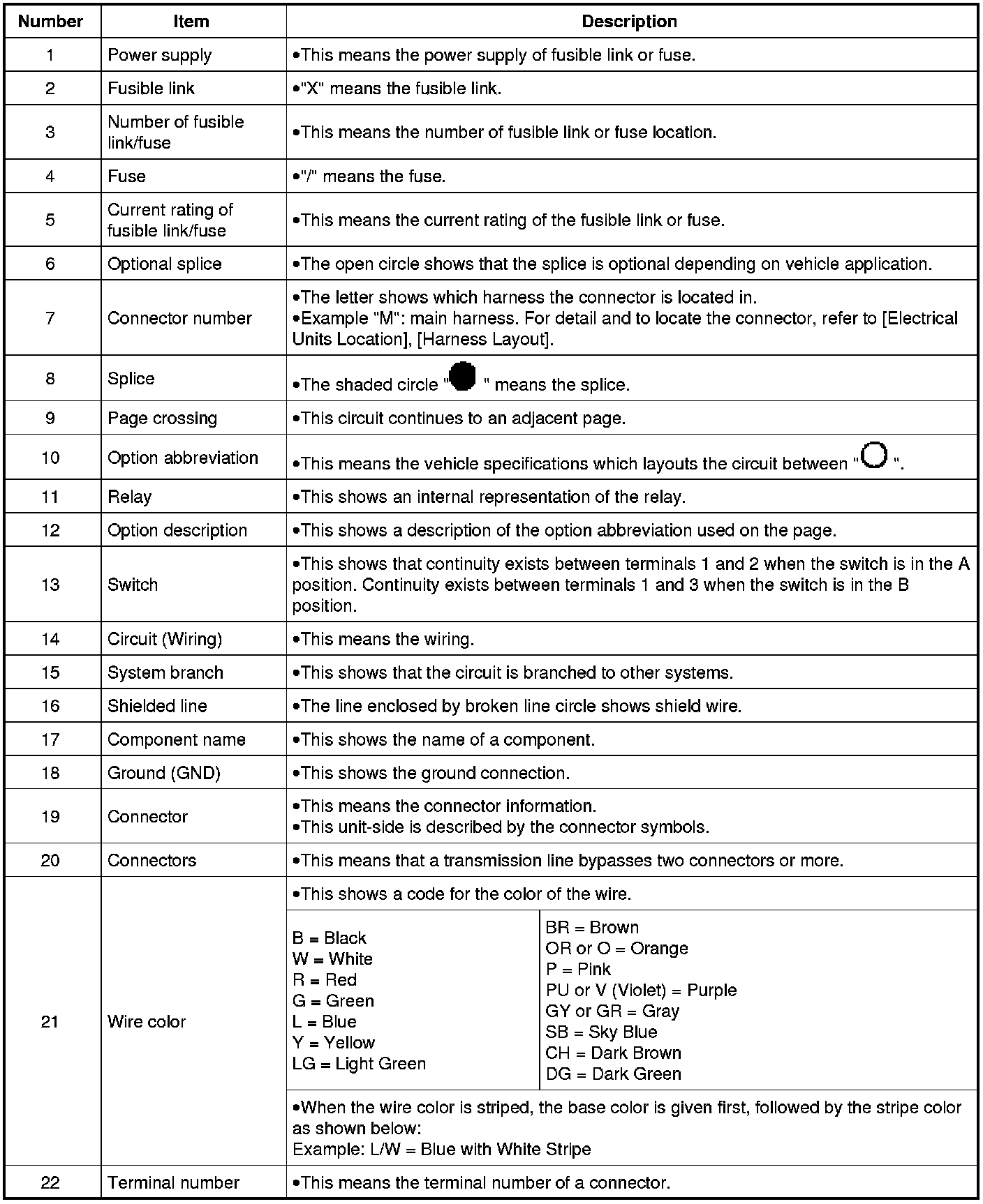 - Connector symbols shown from the terminal side are enclosed by a single line and followed by the direction mark.