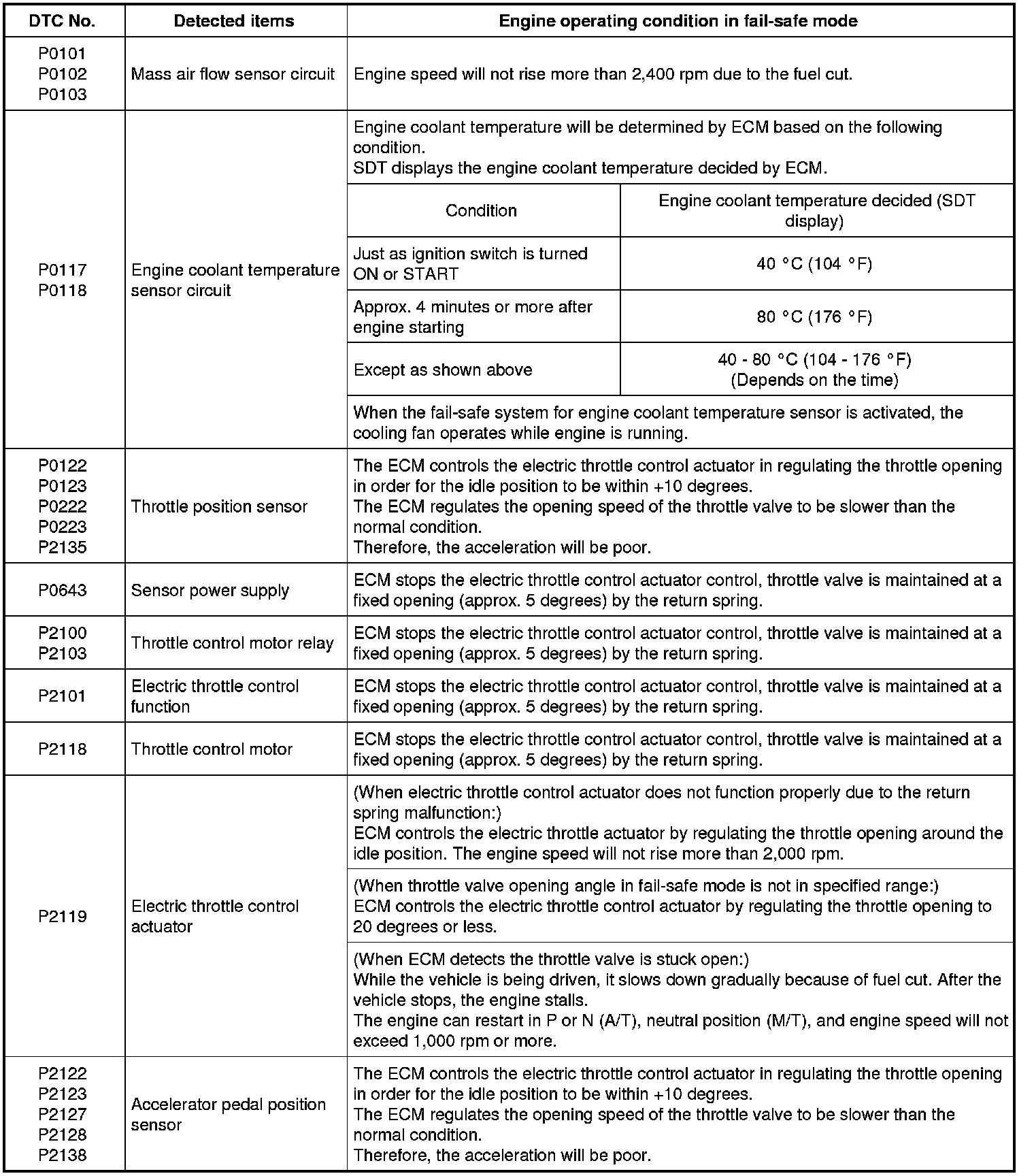 Therefore, when electrical controlled throttle and part of ECM related diagnoses are continuously detected as NG for 5 trips, ECM warns the driver that engine control system malfunctions and MIL circuit is open by means of operating the fail-safe function.