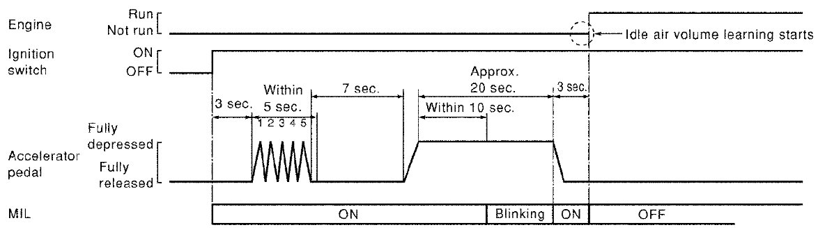 Idle Air Volume Learning is an operation to learn the idle air volume that keeps each engine within the specific range. It must be performed under of the following conditions: