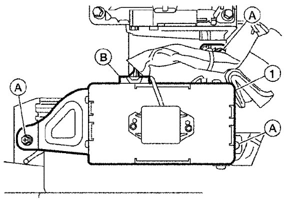 4) Remove the Bluetooth control unit screws (A), then remove the Bluetooth control unit assembly (1).