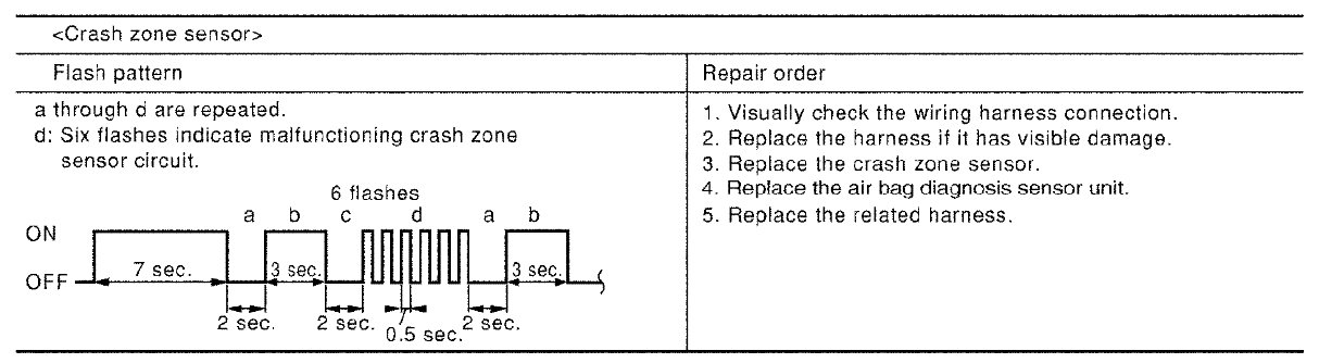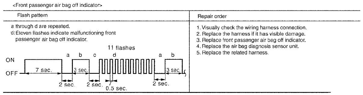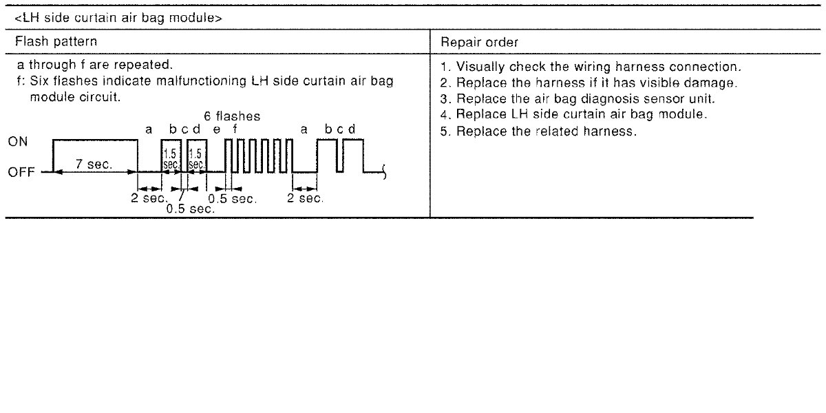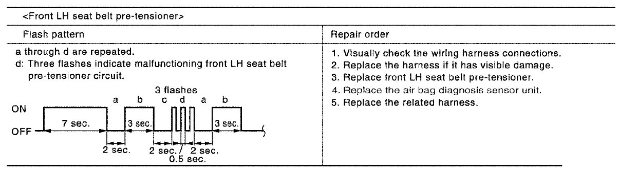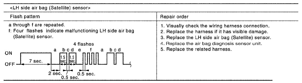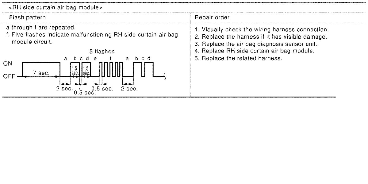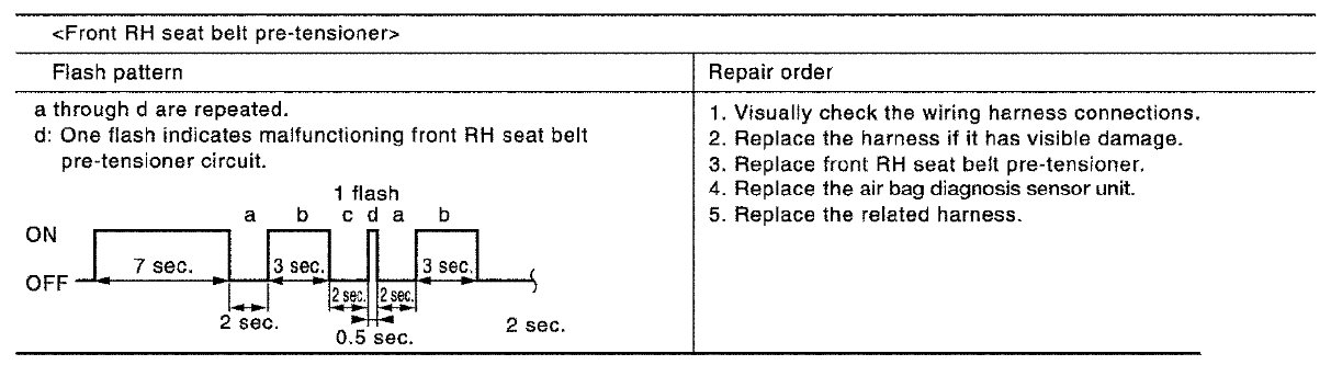 Follow the procedures in numerical order when repairing malfunctioning parts. Confirm whether malfunction is eliminated using air bag warning lamp each time repair is finished. If malfunction is still observed, proceed to the next step. When malfunction is eliminated, further repair work is not required.
