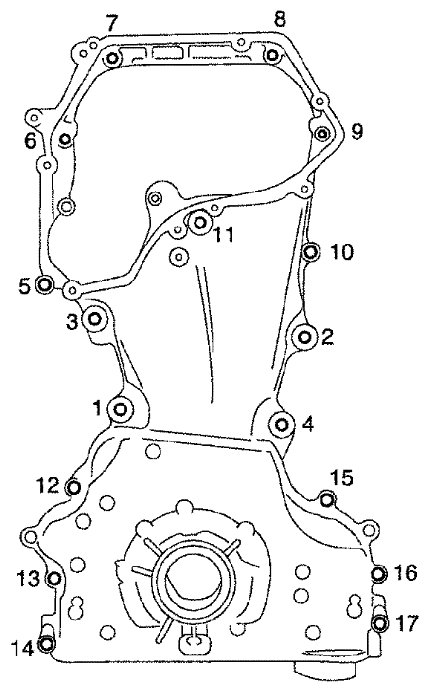 After all bolts are tightened, retighten them to the specified torque in numerical order as shown.