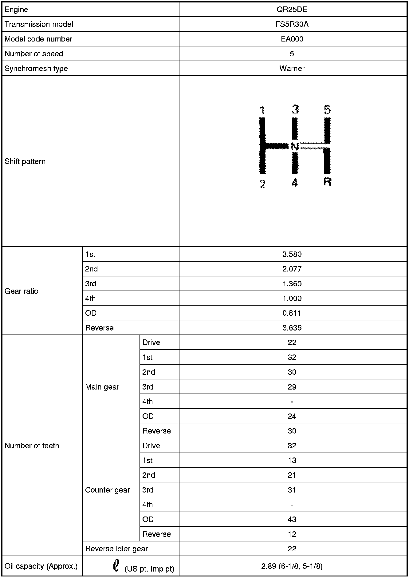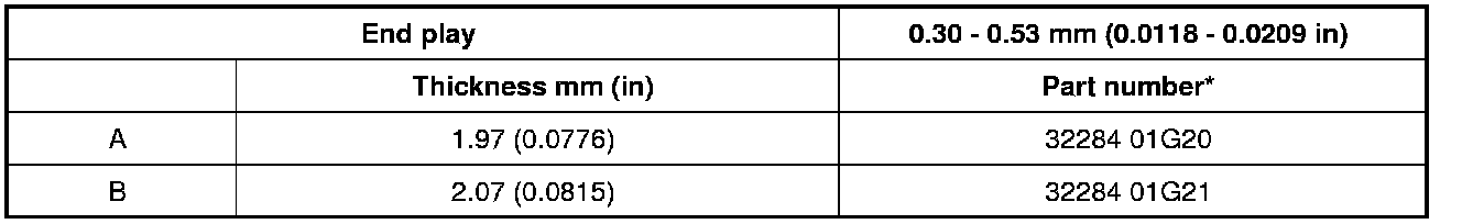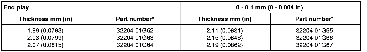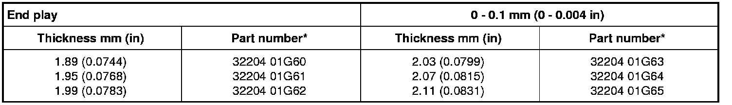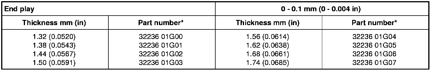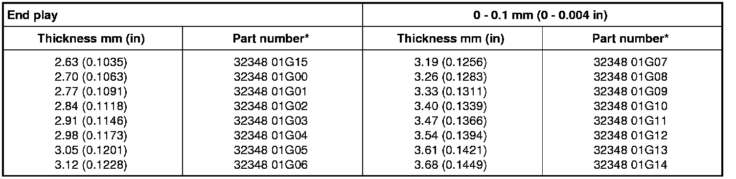 Table for Selecting Proper Counter Gear Front Bearing Shim