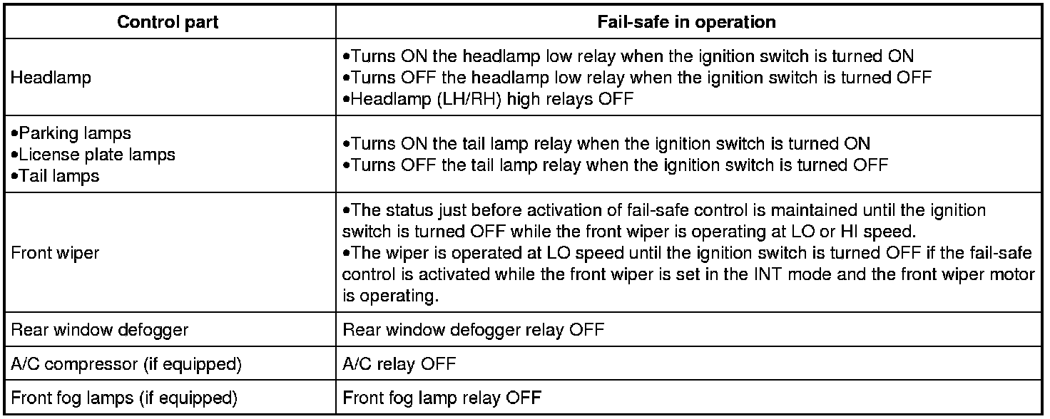 When CAN communication with ECM and BCM is impossible, IPDM E/R performs fail-safe control. After CAN communication recovers normally, it also returns to normal control.