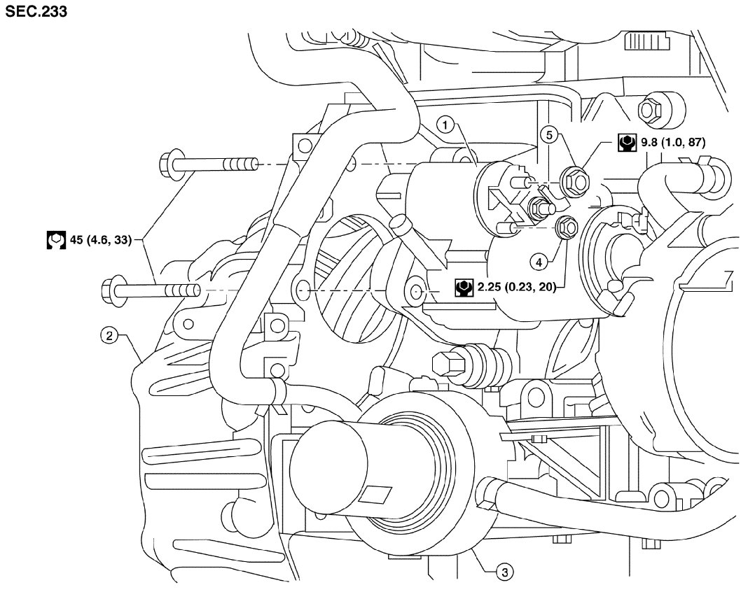 3) Remove terminal "1" (S) and terminal "2" (B) nuts.