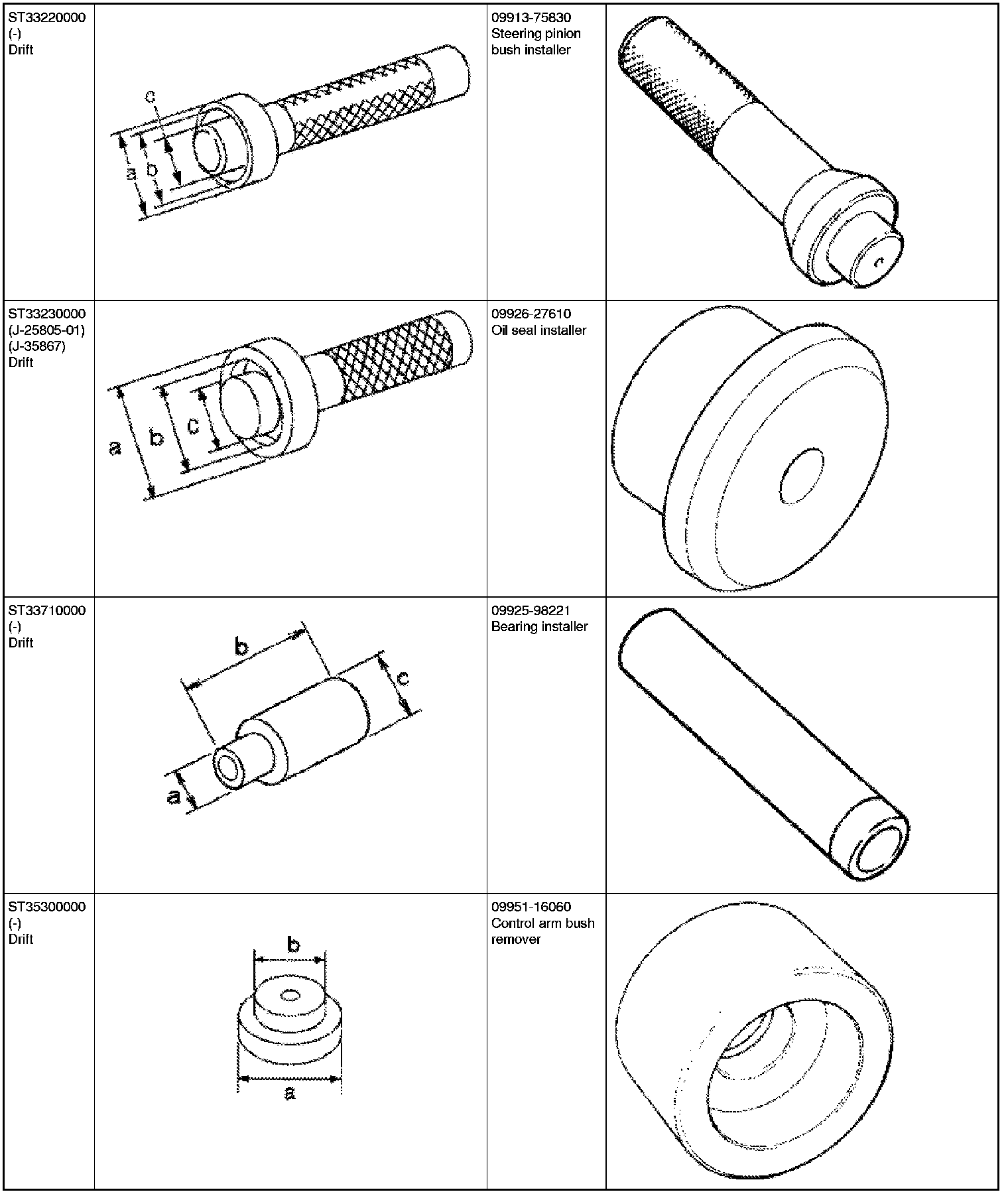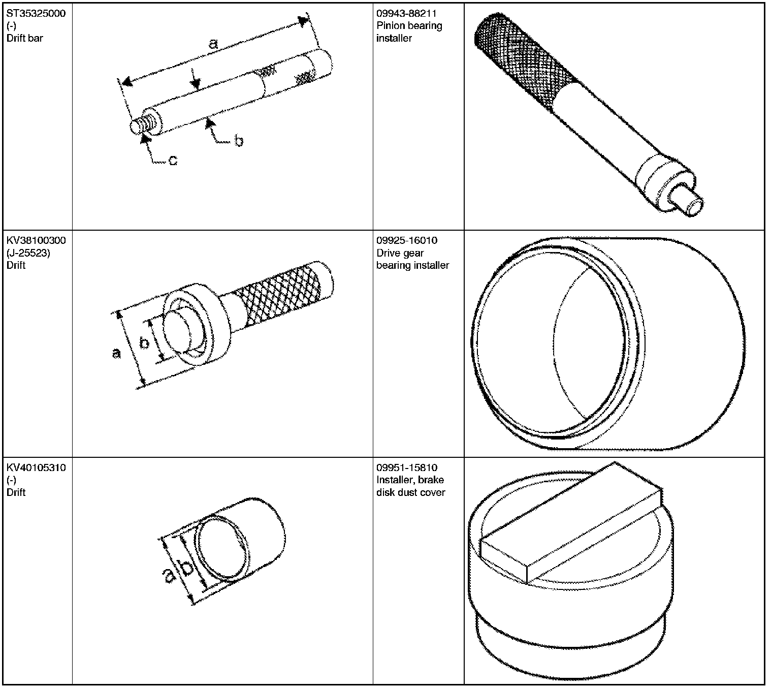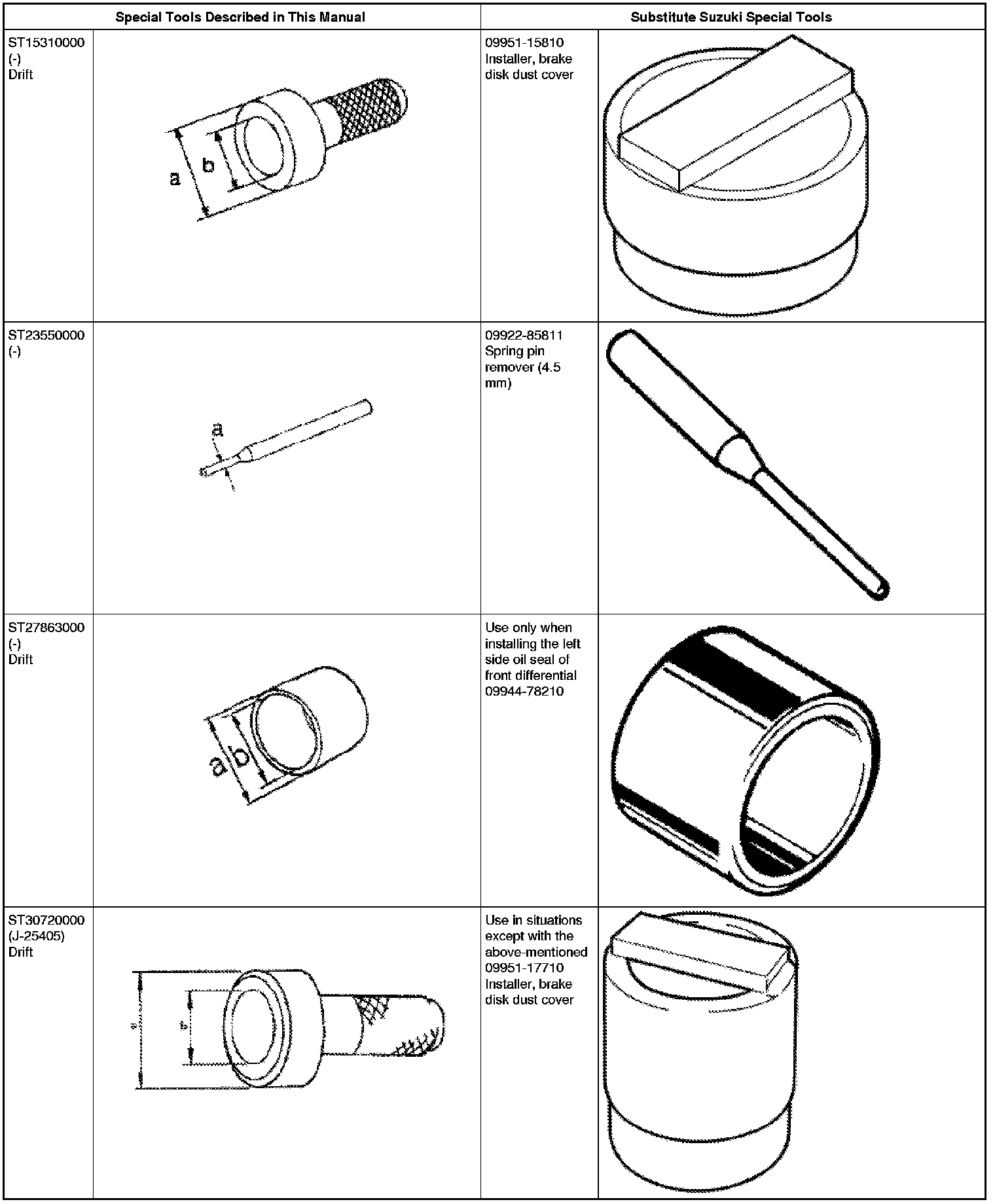 The substitute special tools below are usable instead of the special tools described in this manual.