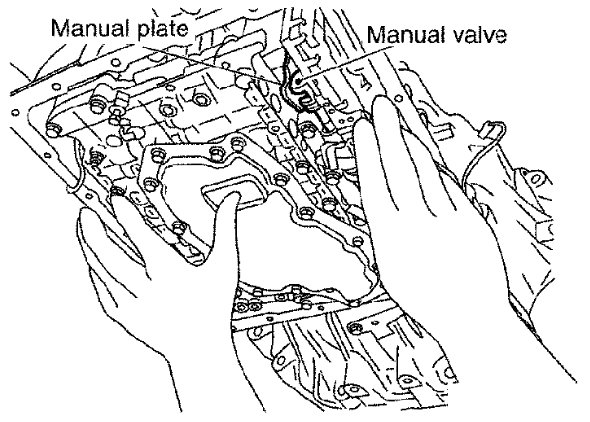 - Assemble it so that manual valve cutout is engaged with manual plate projection.
