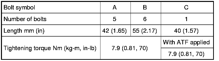 9) Remove bolts (A), (B) and (C) from control valve with TCM.