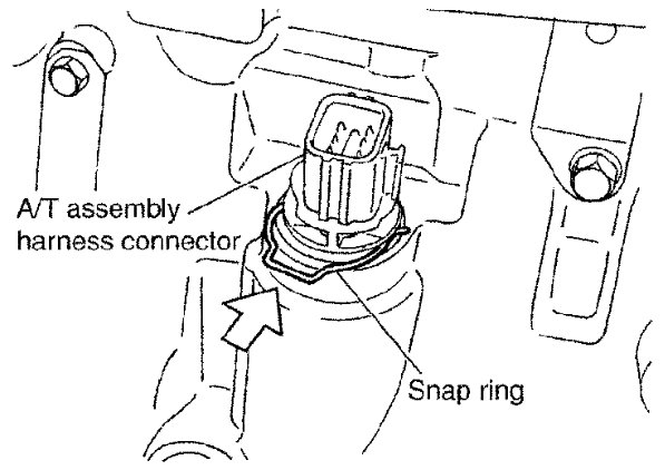 4) Remove snap ring from A/T assembly harness connector.