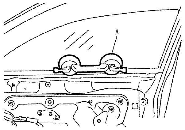 7) Raise the front door glass and hold it in place with suitable tool (A).