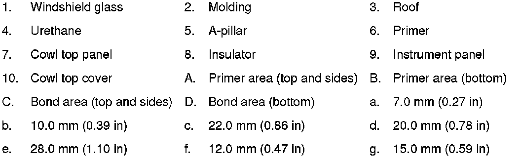 - Driving the vehicle before the urethane adhesive has completely cured may affect the performance of the windshield in case of an accident.