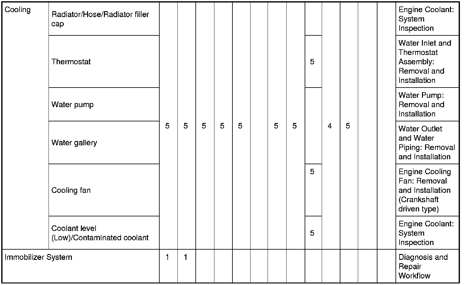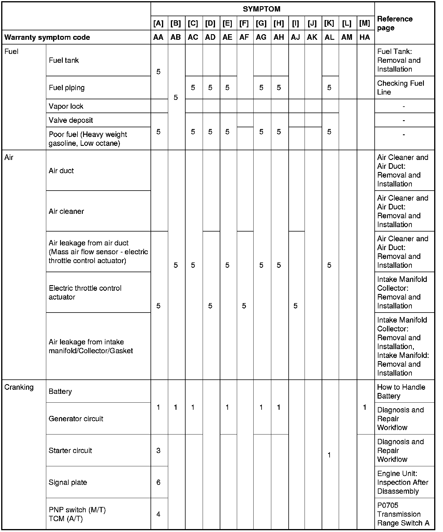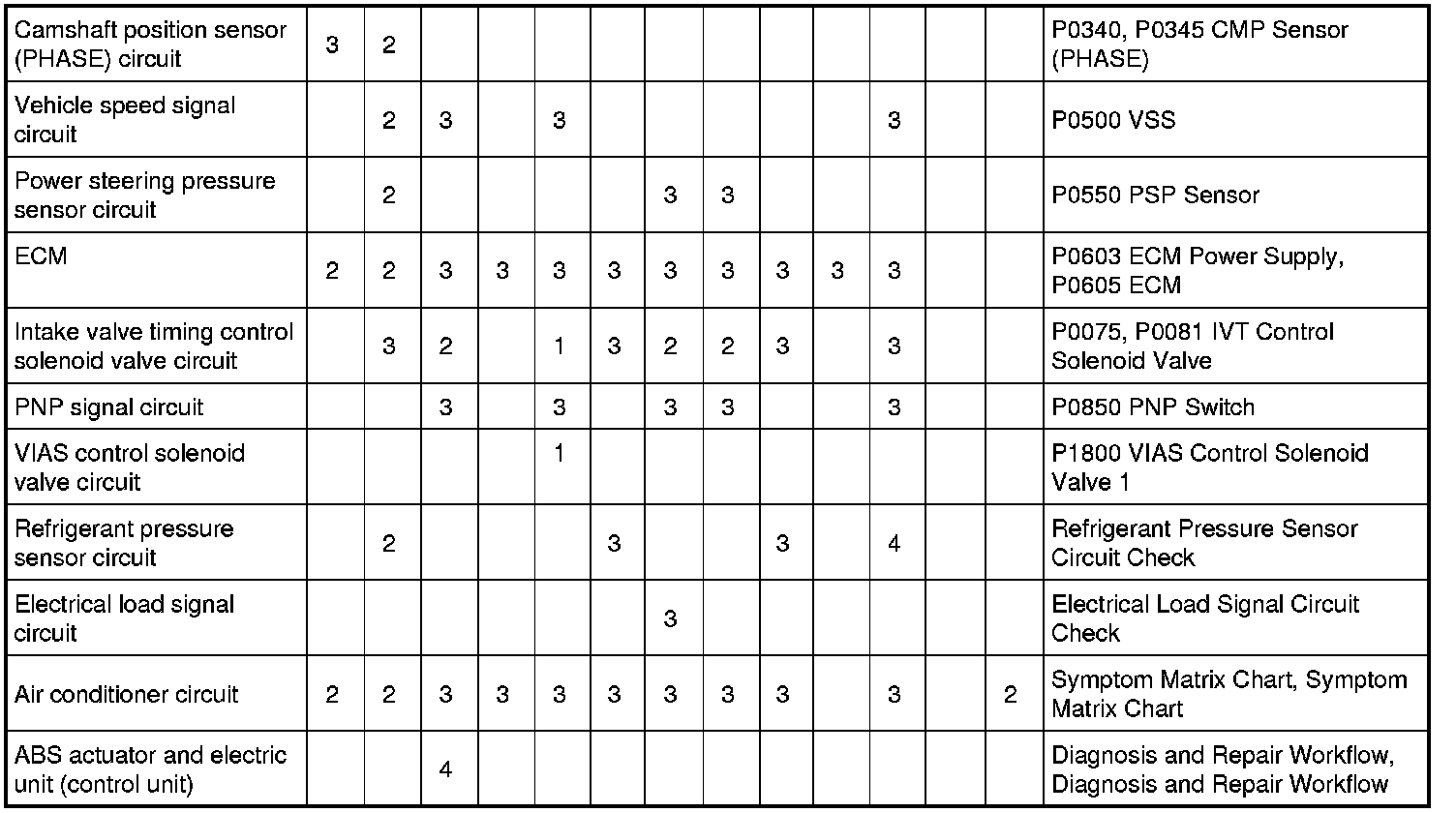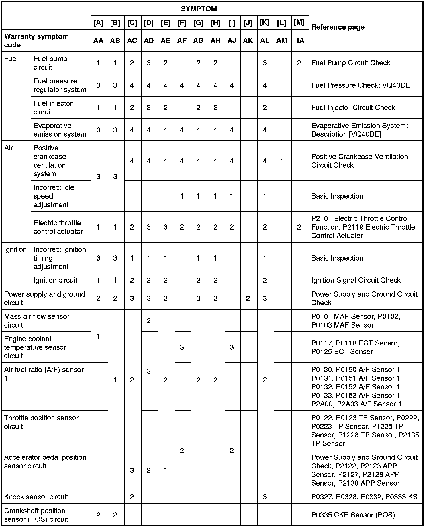 Engine Control System Symptoms: Symptom Matrix Chart