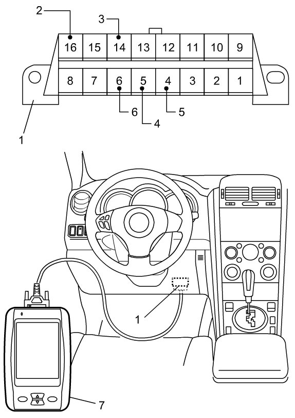 DLC (1) is in compliance with SAE J1962 in its installation position, the shape of connector and pin assignment.