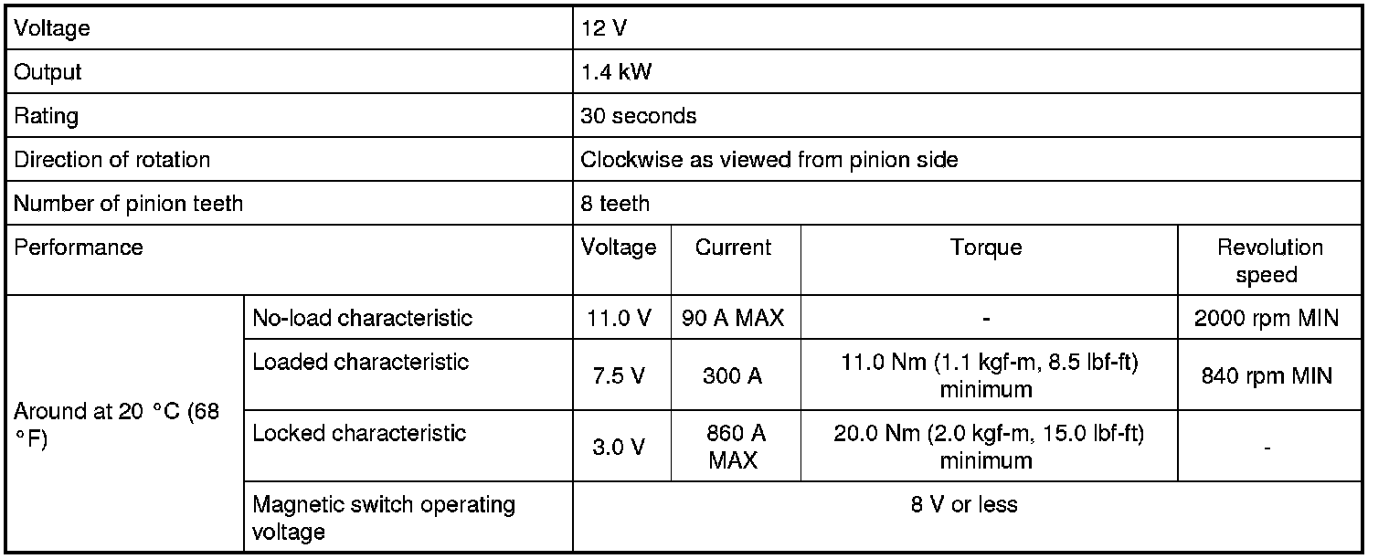 Cranking System Specifications