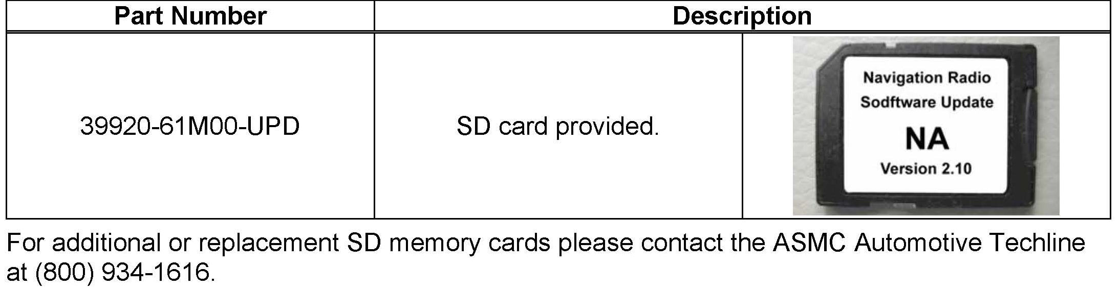 If the update procedure is interrupted for any reason, such as experiencing a loss of power, the update will need to be restarted using a special procedure. In the event power is lost during the software update, and the unit does not recover, dealership personnel are directed to contact Suzuki Support.