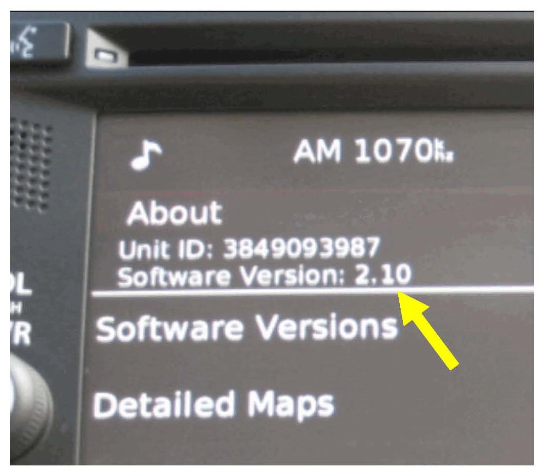 Before attempting to update the Suzuki Infotainment Systems software with version 2.10, confirm that the current software installed is a version prior to 2.10.