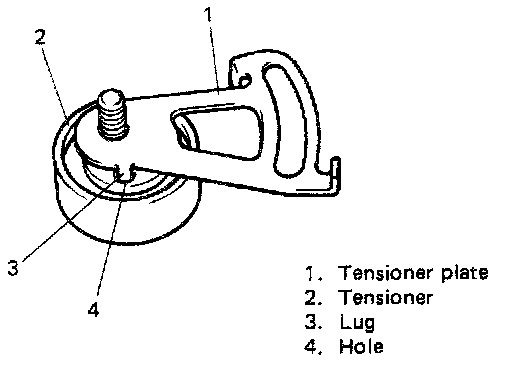 1. Tensioner plate to tensioner. Insert lug of tensioner plate into hole of tensioner.