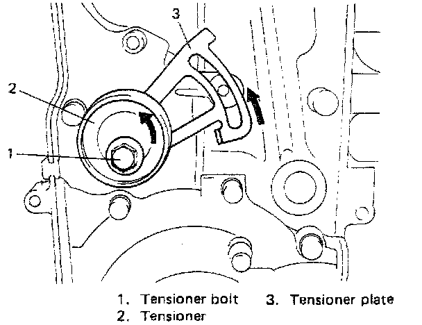 (1) Remove tensioner stud and loosen tensioner bolt.