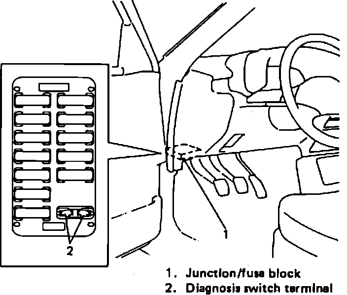 7. Connect spare fuse to diagnosis switch terminal in junction/fuse block, Fig. 3, this will keep amount of air supplied to ISC solenoid constant. The ``Check Engine'' light should indicate diagnostic code No. 12.