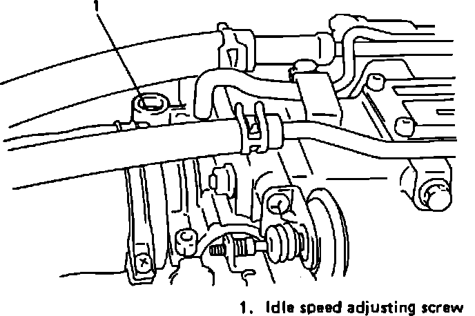 8. Ensure idle speed is within specifications, refer to ``Tune Up Specifications.'' Adjust idle by turning idle speed adjusting screw, Fig. 4.