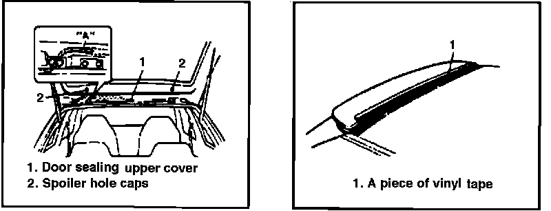 4. Attach a piece of vinyl tape to the back door panel in the front and back of the spoiler. Tbe tape protects the paint finish against scratches caused by tools during the removal procedure.