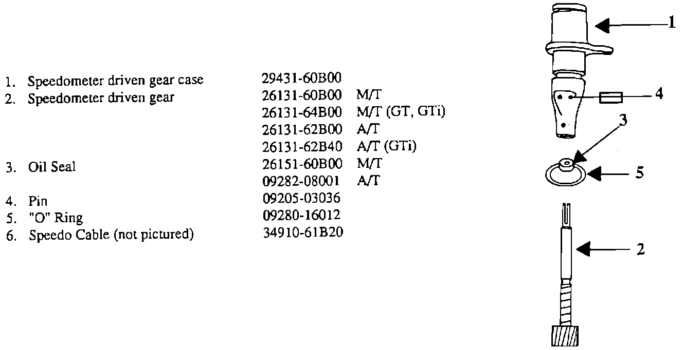 In cases where transmission oil leaks from the speedometer head, replace the components: